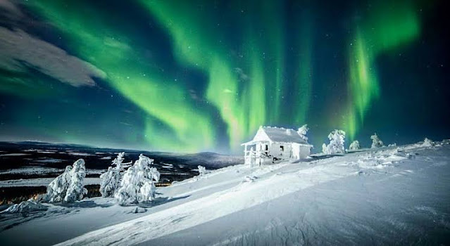 Pemandangan cahaya utara dan lereng ski musim dingin yang luas merupakan daya tarik resor di Lapland Finlandia. Cahaya utara tersebut menyajikan pemandangan alam paling mempesona yang sebagian besar terlihat melalui resor di bukit Levi, Finlandia.